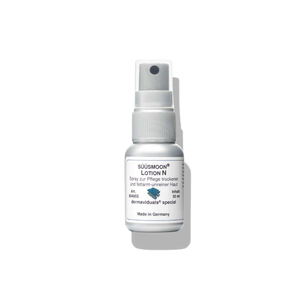 Přípravek süüsmoon®-Lotion N se nastříká na příslušné partie suché pokožky a rozetře se. Süüsmoon®-Lotion N je ideálním podkladem pod krémy DMS dermaviduals® .